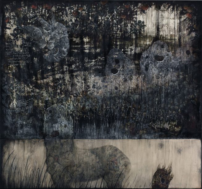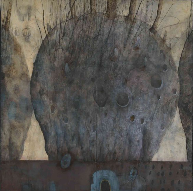 綿布にジェッソ、油彩、木炭、鉛筆、パステル 117.0×117.0cm