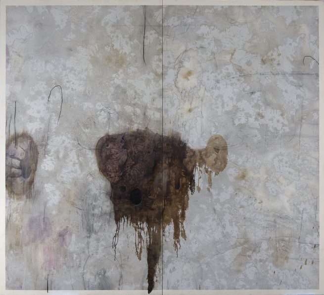 綿布にジェッソ、油彩、木炭、鉛筆、パステル 163.0×154.0cm