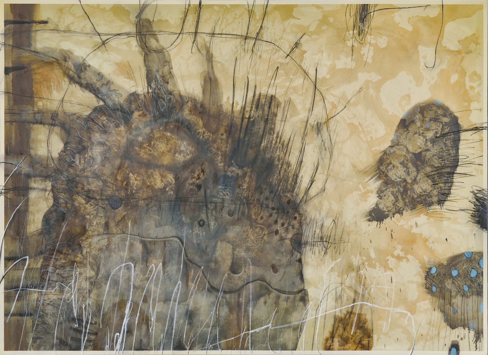 漉き紙にインク、油彩、鉛筆