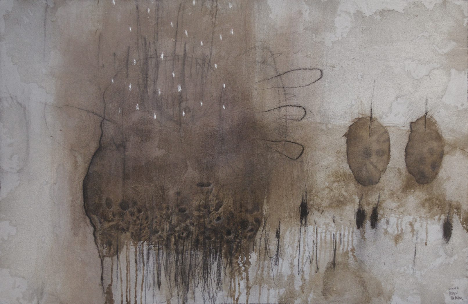 綿布にジェッソ、油彩、木炭、鉛筆、パステル 65.2×53.0cm