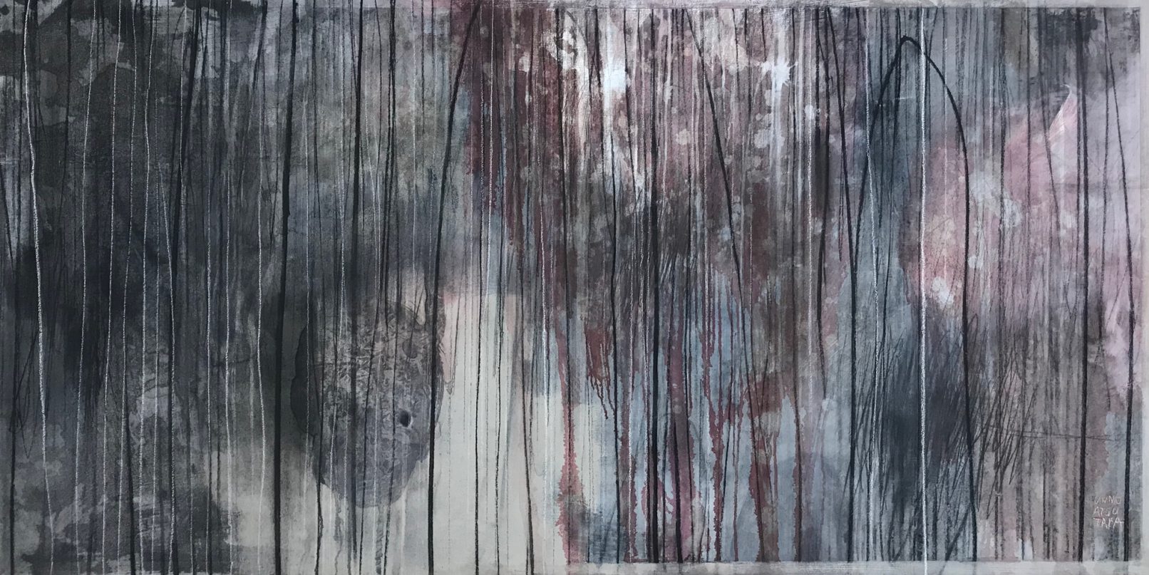 綿布にジェッソ、油彩、木炭、鉛筆、パステル 381.0×230.0cm