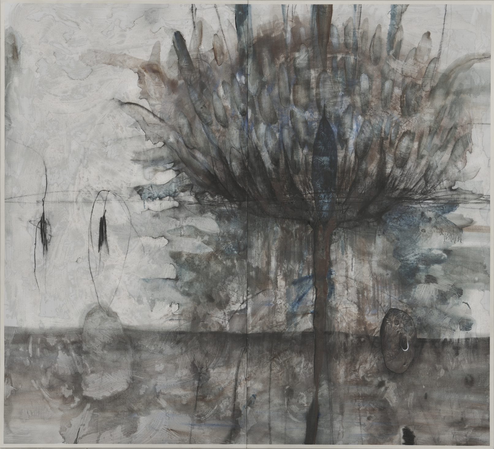 綿布にジェッソ、油彩、木炭、鉛筆、パステル 163.0×154.0cm