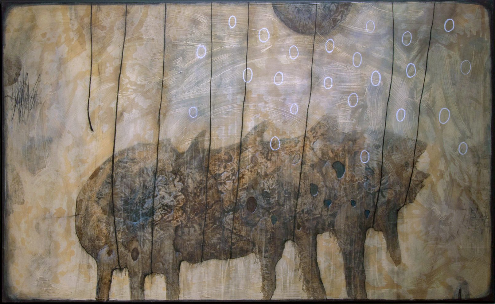 漉き紙にインク、油彩、鉛筆