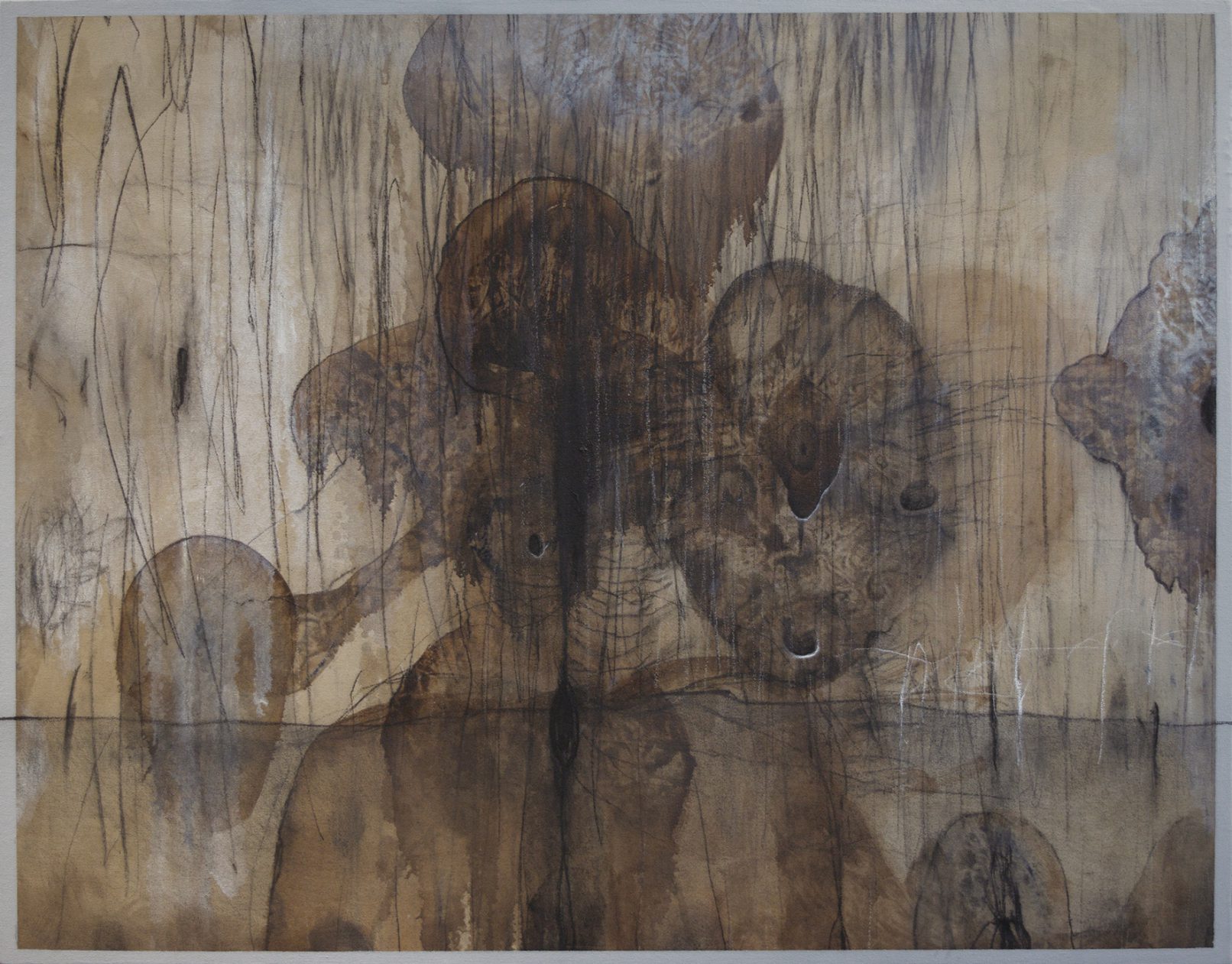 綿布にジェッソ、油彩、木炭、鉛筆、パステル 163.0×154.0cm