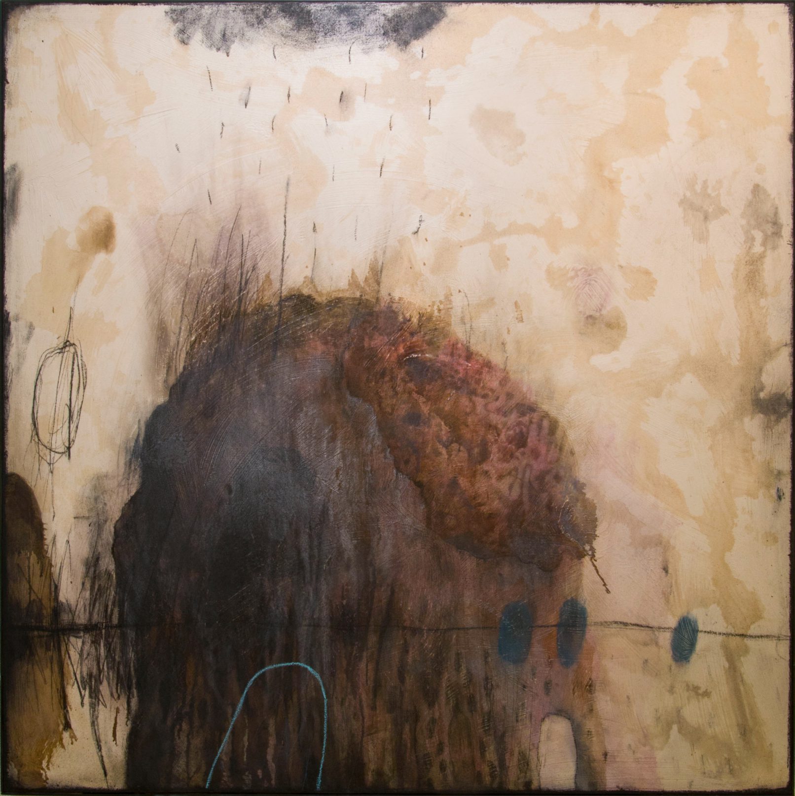 綿布にジェッソ、油彩、木炭、鉛筆、パステル 24.2×24.2cm