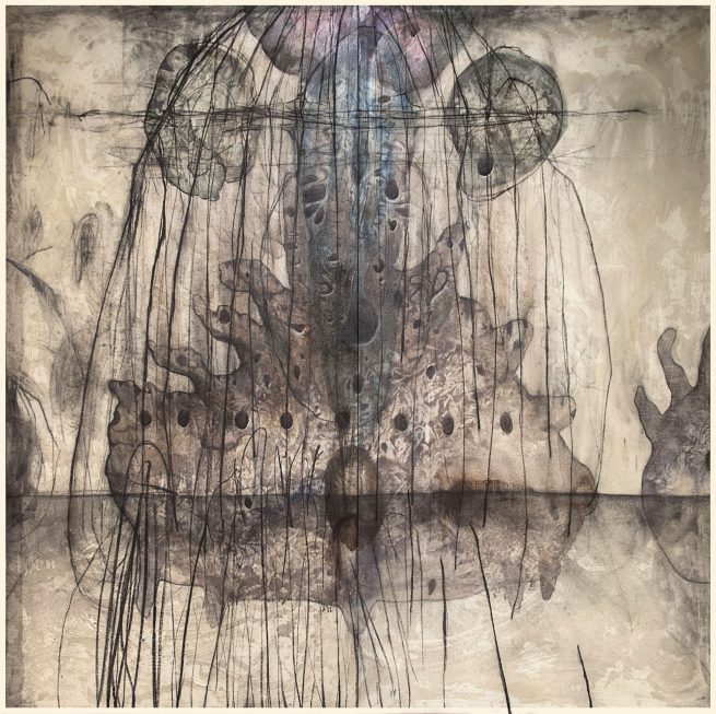 綿布にジェッソ、油彩、木炭、鉛筆、パステル 117.0×117.0cm