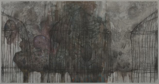 綿布にジェッソ、油彩、木炭、鉛筆、パステル 381.0×230.0cm
